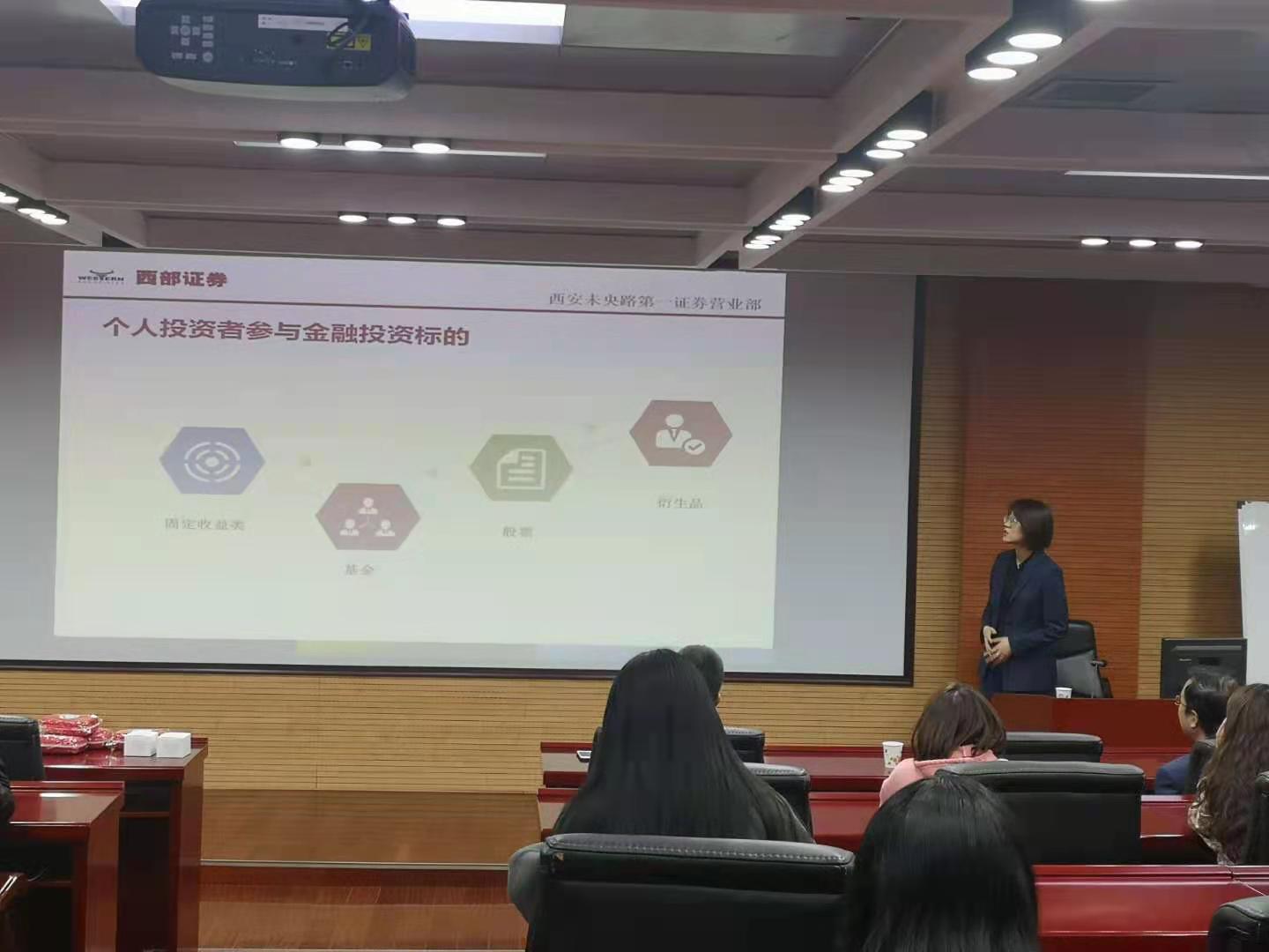 王玲以基金管理和资产配置为专题做了报告。分析了金融市场现状,结合投资风险与收益,普及了资产配置的相关理论和实践,进一步加深了同学们对于专业知识的理解。