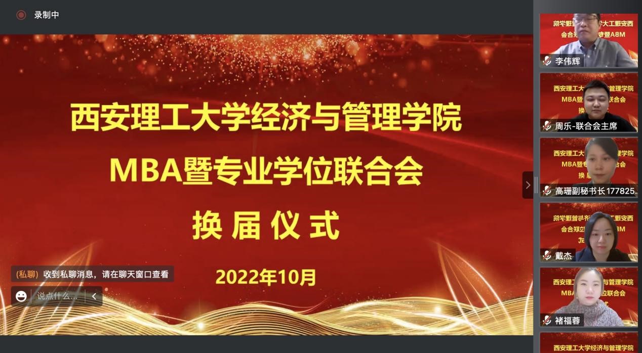 滋兰树蕙,初心不渝。2022年10月30日,2007so太阳集团MBA暨专业学位联合会,通过云端会议室的形式成功举办了第十六届联合会换届仪式。2007so太阳集团经济与管理公司党委书记王瑞生、经理胡海青、副经理李建勋及专业学位教育中心师生70余人,中国MBA精英峰会、西北各大高校MBA联合会主席等15人受邀参加了本次会议。会议由专业学位教育中心主任赵玉强主持。