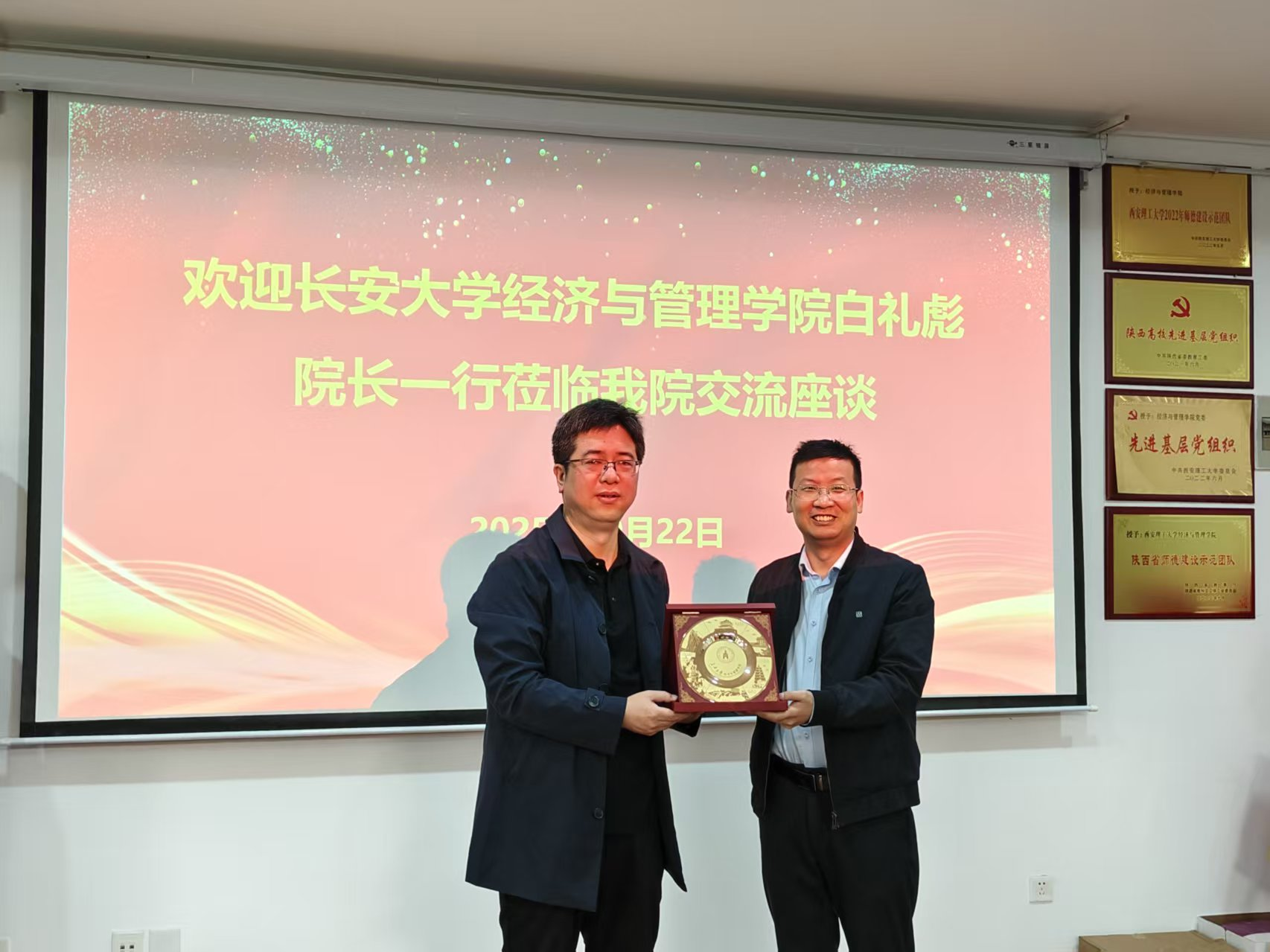长安大学白礼彪特向公司赠送校徽纪念品,由公司李建勋代表接收。