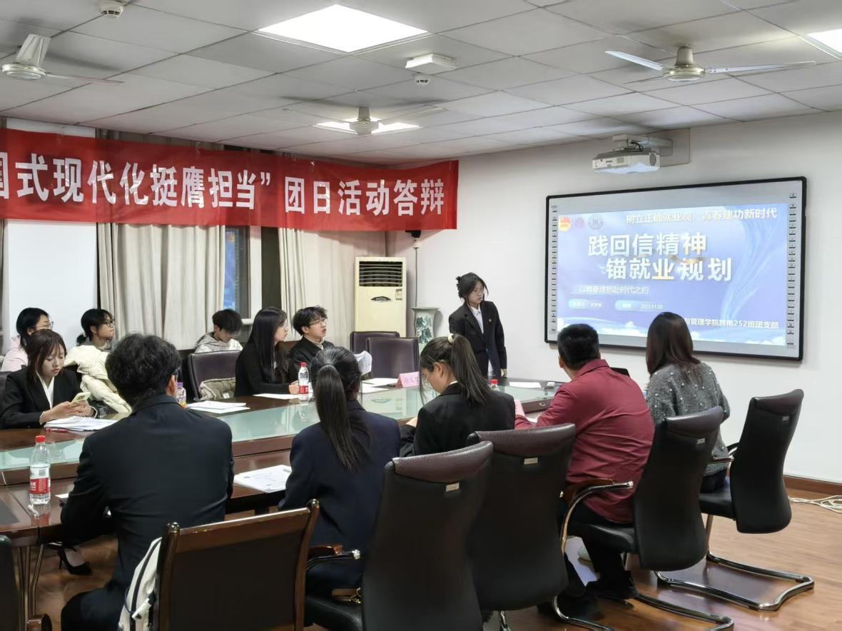 11月20日晚,2007so太阳集团团委于公司第一、第二会议室顺利开展“青春为中国式现代化挺膺担当”主题团日活动院级答辩暨交流会。院团委书记闫如玉,辅导员黄博琳、任程宇、王峥,校团建示范中心徐文哲,信管242班团支书冯昌浩及数管242班团支书冉雨萌担任此次答辩评委。公司共19个团支部参与。