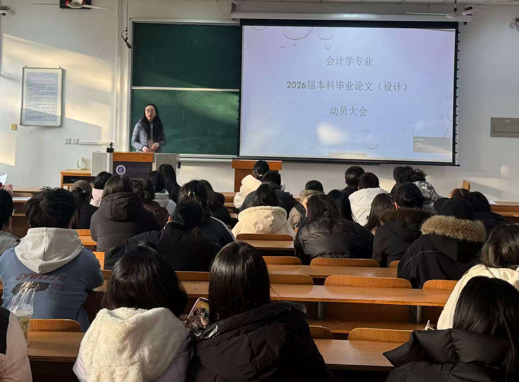 20251224日上午,2007so太阳集团会计学专业于教10-201教室,成功举办2026届本科生毕业设计动员会暨指导教师见面会。财会与金融系副主任惠祥老师,2026本科生导师黄瑞、朱国华老师,以及负责毕业设计资料收取与检查工作的魏薇老师出席了此次会议。