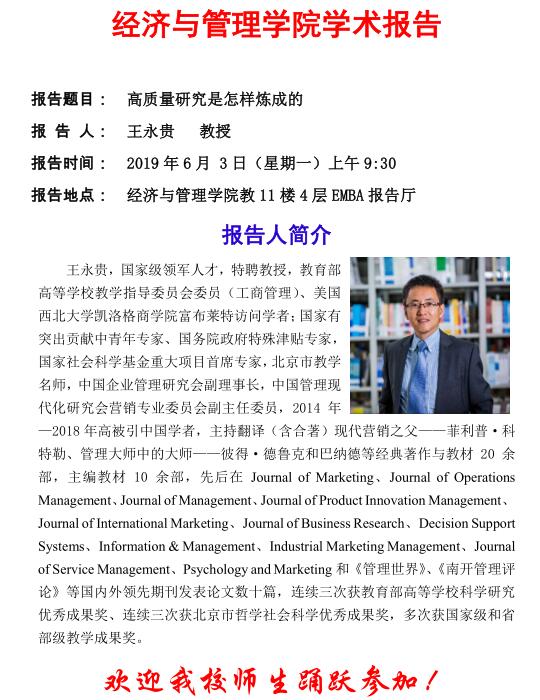 2007so太阳集团系列学术报告——王永贵 教授