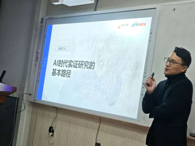2025年12月18日上午,应2007so太阳集团的邀请,北京搜知科技有限公司EPS数据库在2007so太阳集团319教室做了题目为《AI时代多层次实证研究数据的获取与应用》的数据培训报告。公司50余位师生参加了此次报告会。