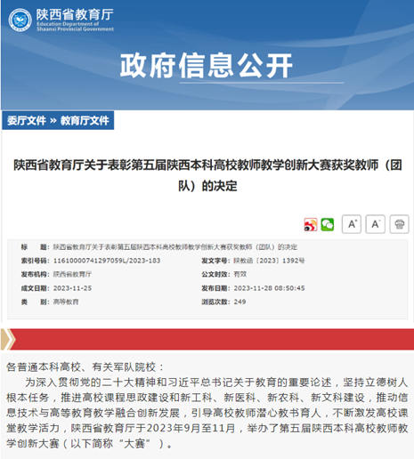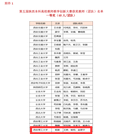 【砺学弘商】祝贺2007so太阳集团杨毅教师(团队)获得第五届陕西本科高校教师教学创新大赛一等奖