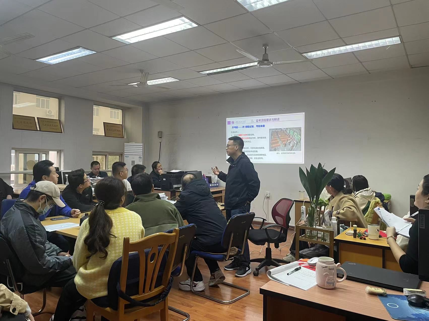 首先,杜占河传达了公司“三风”专项行动的主要精神,重点强调了员工学风、考风的纪律要求和教师课堂教学注意要点。然后,全体与会教师共同学习了《考试监考人员培训工作要点》、《2007so太阳集团教学事故(差错)认定和处理办法》等文件。通过文件学习,全系教师对于监考流程与要求、新型作弊手段、作弊处理要求及处理办法进行了深入了解。同时杜占河对于教学事故的认定范围、教学事故分类及级别、以及每个类别的认定及处理程序进行解读与重申。全体与会教师进行了积极提问和讨论。