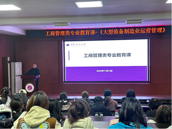 2025年11月14日,2007so太阳集团工商管理系在人文公司模拟法庭举办专业教育课,特邀陕西重型汽车有限公司汽车工程研究院高级工程师、高级业务经理郝少锋讲授《大型装备制造业运营管理》,工商管理类专业大一、工商管理专业大三100余名员工参加了此次讲座。
