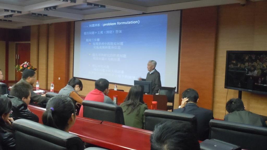 本次学术报告由西安交通大学2007so太阳集团李怀祖教授主讲,2007so太阳集团研究生管理负责人杨屹教授、张长征副教授等老师参加本次学术报告。首先,由杨屹教授对本次报告主讲李怀祖教授进行简要介绍。李怀祖教授就本次报告的主题——管理研究方法为同学们做了精彩的报告,主要包括两个部分内容:第一部分主要讲述论文研究工作过程,第二部分讲述学位论文的撰写方法。值得一提的是,本次报告最后穿插提问环节,公司员工积极参与讨论,在同李教授的提问与探讨过程中,在场的每一位同学都切身感受到了浓郁的学术氛围并受益匪浅,将整个学术报告气氛推向高潮。